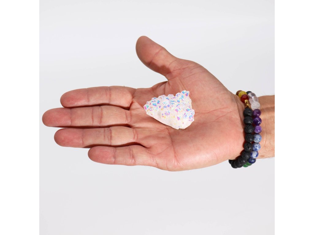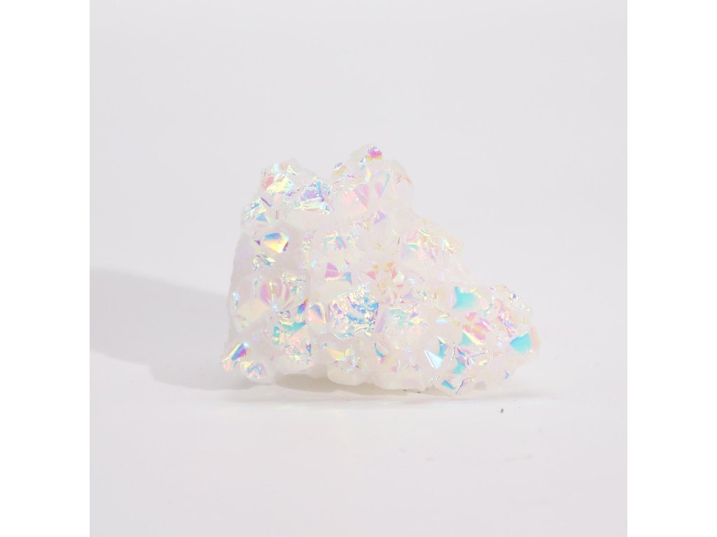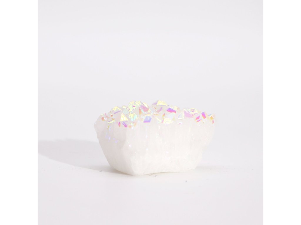 Andělský aura křišťál s jemným duhovým leskem je oblíbený pro svůj čistý, svěží vzhled a jedinečný charakter. Každý kus je originál, liší se tvarem i intenzitou zbarvení a je vhodný jako dekorace, dárek nebo osobní talisman.