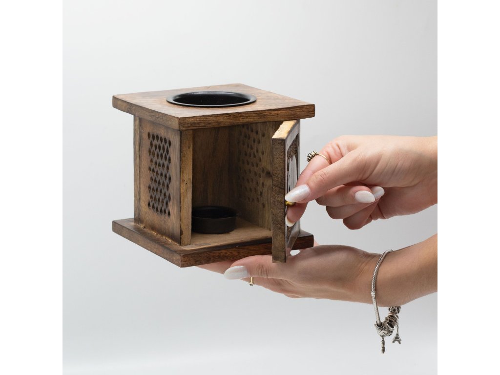 Aroma lampa Slon z mangového dřeva vnáší do interiéru pocit klidu a harmonie. Je ručně vyřezávaná z udržitelně získaného mangového dřeva a zdobená jemným motivem Buddhy, díky čemuž působí nejen jako funkční doplněk, ale i jako duchovní dekorace.