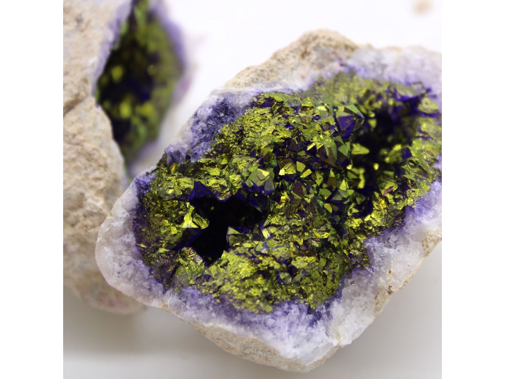 Geody jsou duté kameny, jejichž krása je skryta uvnitř, a právě to z nich činí vyhledávaný sběratelský a dekorativní prvek. Díky elegantní kombinaci barev se skvěle hodí k vystavení otevřené jako výrazný doplněk interiéru.