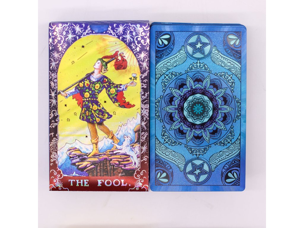 Sada tarotových karet s modrou fólií - Mandala, s brožurou. Najděte rovnováhu a jasnost s tarotovou sadou Mandala s modrou fólií. Tato sada se 78 kartami spojuje posvátnou geometrii s duchovním uměním a obsahuje složité vzory modré a zlaté fólie inspirované meditací a všímavostí. Hladké a flexibilní karty usnadňují každé čtení. Kompaktní brožurka nabízí rychlý přístup k významům a rozšířením, ideální pro zkušené čtenáře i začátečníky. Sada je v angličtině.