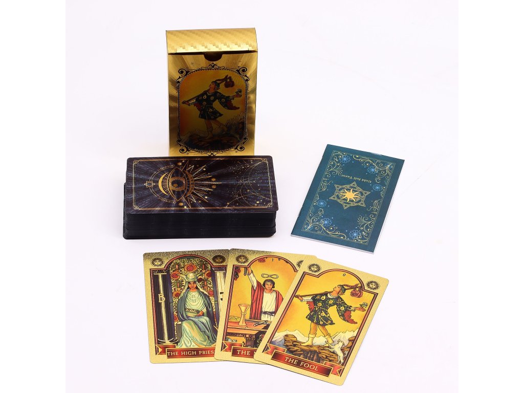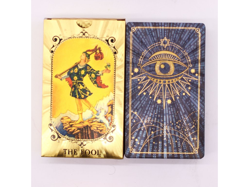 Sada tarotových karet s modrou a zlatou fólií - Vševidoucí oko - s brožurou. 78 karet, design ztělesňuje intuici, moudrost a vnitřní pohled – povzbuzuje čtenáře, aby se podívali za povrch. Přiložená brožura vysvětluje významy, takže balíček je vhodný pro všechny úrovně dovedností. Odolný, nápadný a symbolický, je to výjimečný kousek pro čtenáře tarotu, kteří oceňují hloubku a styl stejnou měrou. Sada je v angličtině.