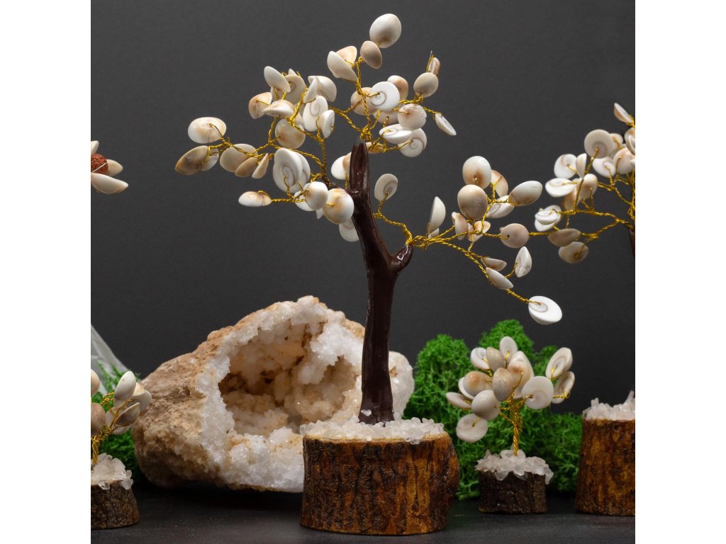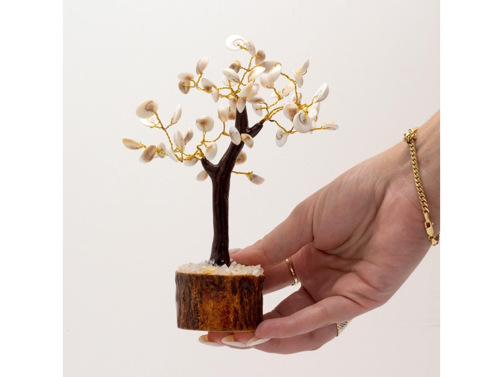 Každý kámen je ručně vybírán z řeky Gomati v Indii, která je známá svými symbolickými spirálovitými vzory, které znázorňují životní cykly, osobní růst a tok energie. Tento úžasný strom není pouze dekorativním kouskem, ale také se věří, že přitahuje bohatství, prosperitu a ochranu před negativními energiemi.