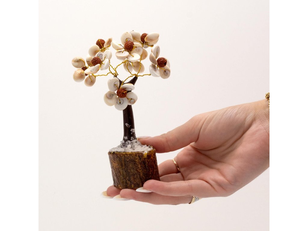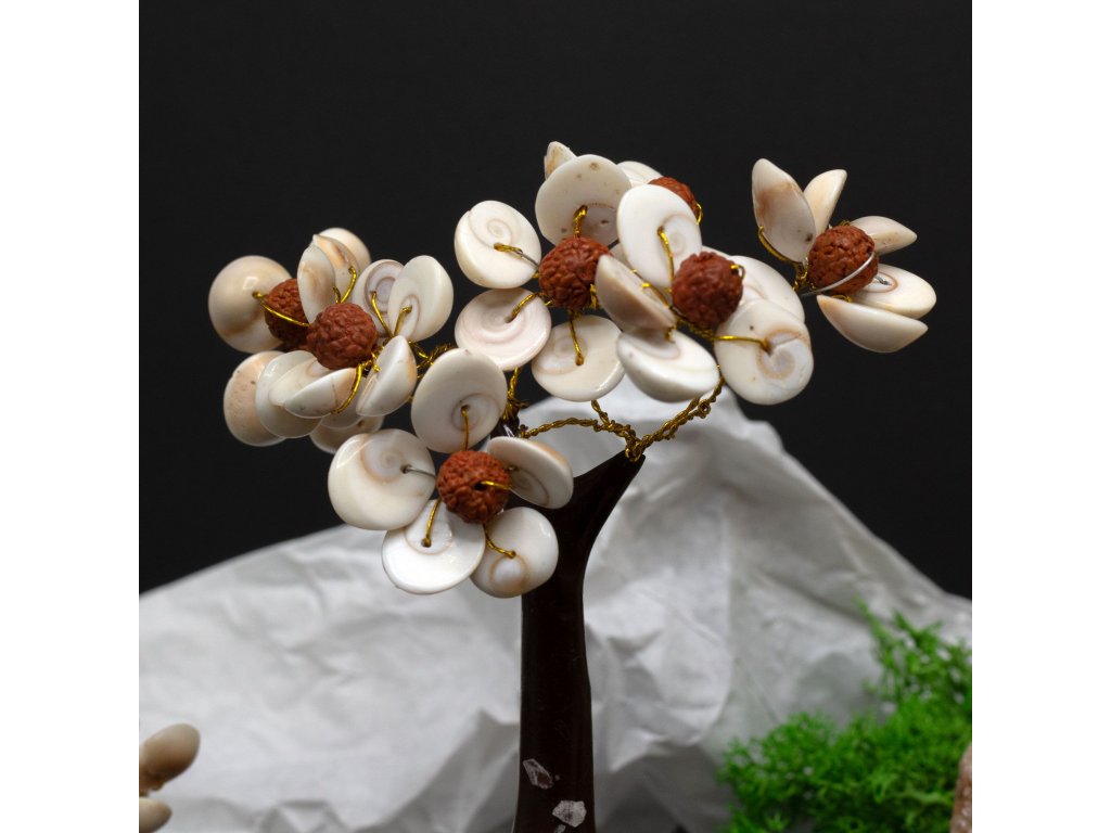 Tento jedinečný strom kombinuje mystickou sílu 45 Gomati Chakra kamenů s posvátnými Rudraksha korálky, uctívanými pro jejich duchovní léčivé vlastnosti. Společně vytvářejí silný symbol ochrany, růstu a rovnováhy.