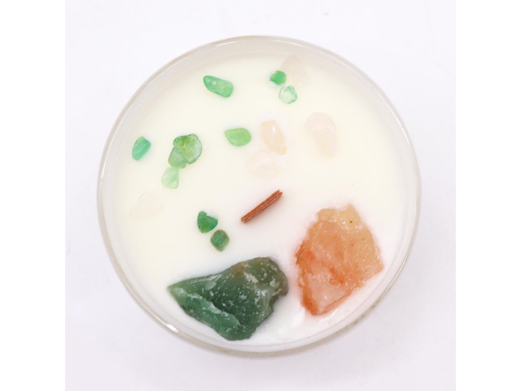 Zažijte sílu léčení a otevření srdce s touto čakrovou křišťálovou svíčkou určenou pro srdeční čakru. Je vyrobena z čistě přírodního sójového vosku, pravých drahokamů, speciálně namíchaného parfému a magického dřevěného knotu, který při hoření jemně praská a navozuje pocit klidu a pohody.