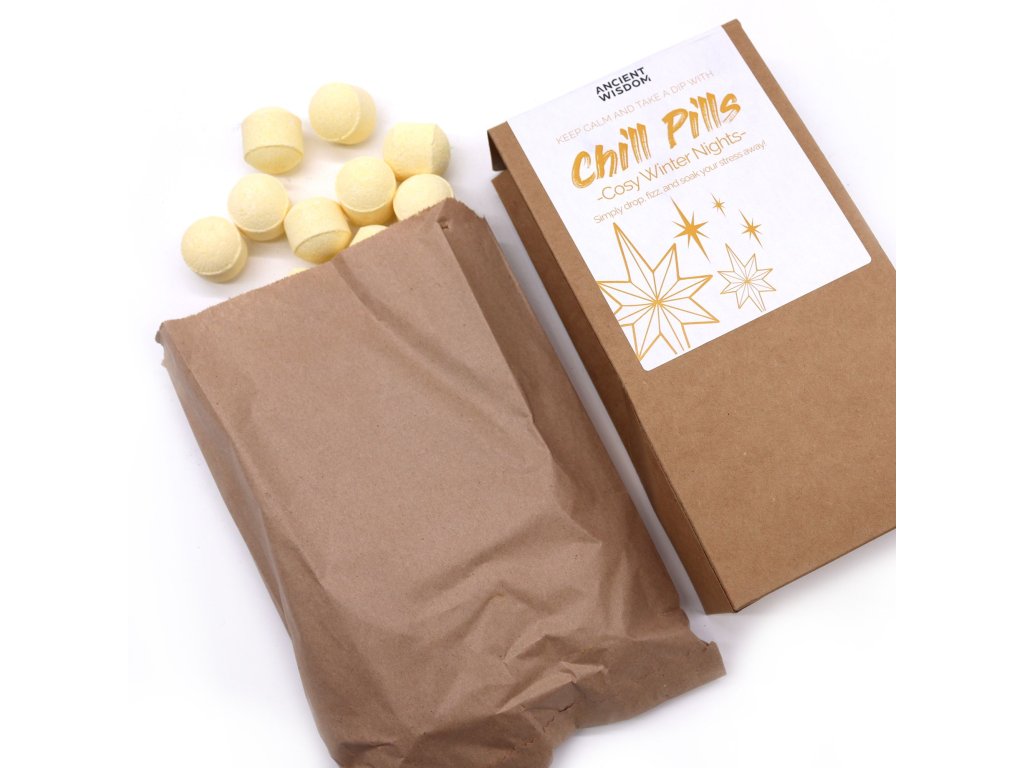 Chill Pills dárkové balení – Teplé zimní večery nabízí bohatý a smyslový koupelový zážitek inspirovaný hřejivými kořeněnými vůněmi. Každá šumivá pilulka postupně uvolňuje vrstvy aroma, které navozují pocit pohodlí, klidu a útulné atmosféry.