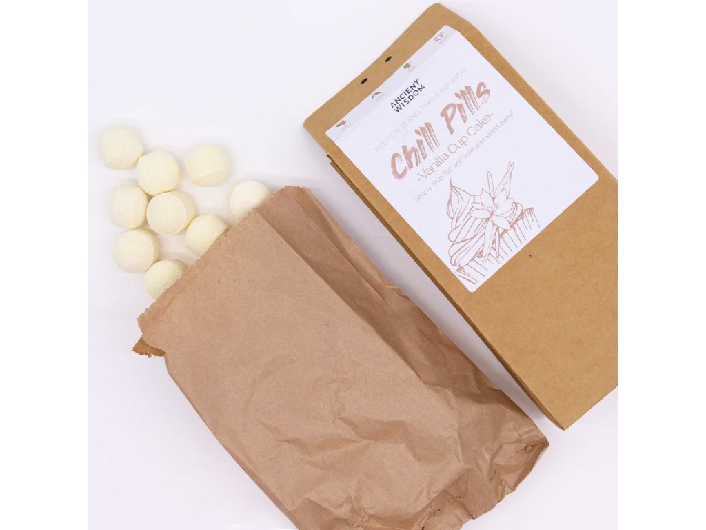 Chill Pills dárkové balení – Vanilla Cupcake vás zahalí do lahodné, jemně sladké vůně čerstvě upečeného vanilkového cupcakes. Každá šumivá pilulka uvolňuje krémové, hřejivé aroma, které evokuje domácí pohodu, klid a sladké potěšení.