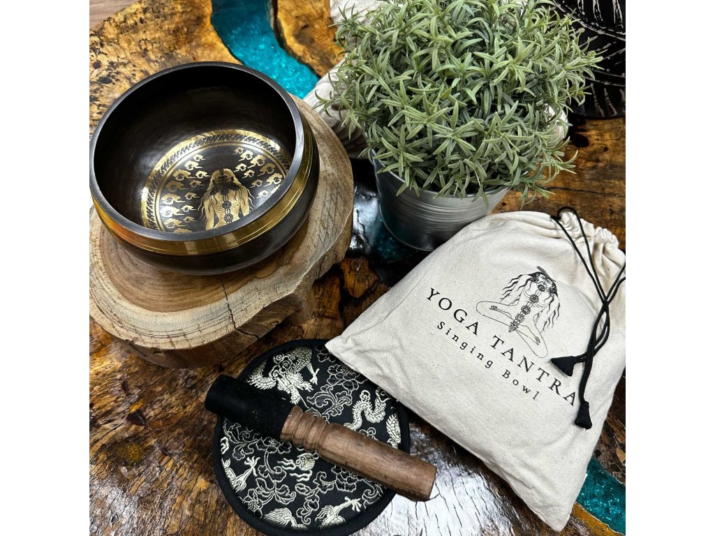 Zpívající miska při rozezvučení vydává jemné, rezonující tóny, které vytvářejí klidnou atmosféru a podporují soustředění. Symbol jogína, dodává misce hlubší význam a činí z ní nejen nástroj, ale i smysluplný rituální předmět.
