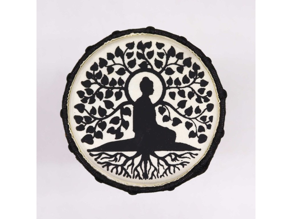 Tento buben je ozdoben symbolem mandaly, který v mnoha duchovních tradicích představuje jednotu, rovnováhu a celistvost. Díky tomu funguje nejen jako hudební nástroj, ale také jako dekorativní a symbolický prvek.