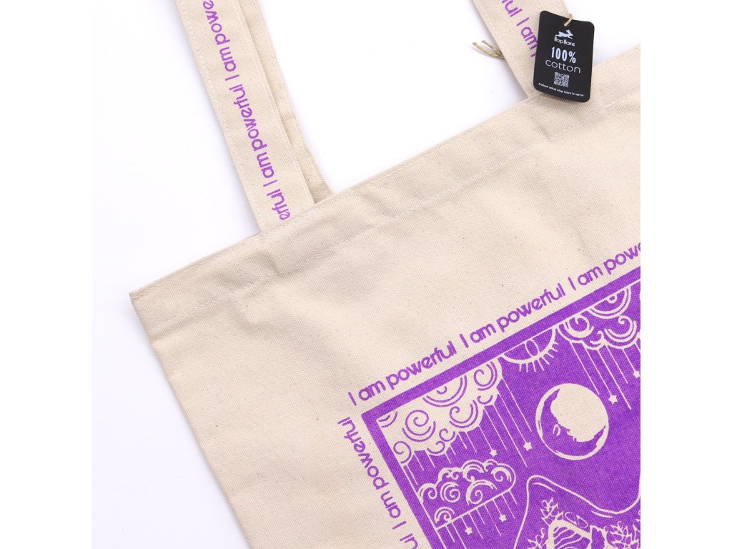 Bavlněná taška „I Am Powerful“ je symbolem vnitřní síly, odhodlání a schopnosti stát pevně ve své vlastní energii.