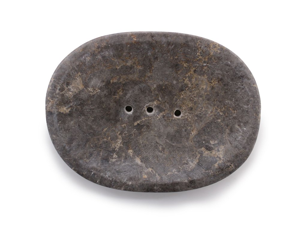 Mýdlenka z šedého mramoru v oválném tvaru vyniká jemnou kresbou kamene a tlumenými odstíny. Každý kus je originál s přirozenými rozdíly v barvě a struktuře, které podtrhují autenticitu materiálu.