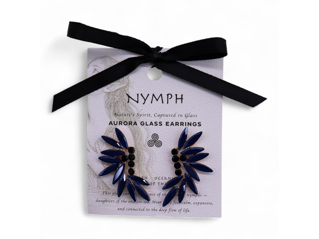 Modré sklo zachycuje světlo s tichou elegancí a dodává šperku hloubku i rafinovaný charakter. Náušnice působí mysticky, ale zároveň klidně a nadčasově – jsou ideální pro ty, kdo mají rádi jemnou symboliku a barvy, které podporují soustředění a emocionální rovnováhu.