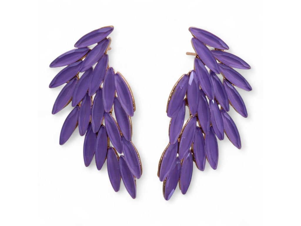 Lavender – Vintage Glass – Angel Wings jsou elegantní náušnice ve tvaru andělských křídel, které v sobě nesou jemnost, klid a tichou symboliku soumraku. Design z nerezové oceli v kombinaci s levandulovými skleněnými kamínky odráží éterickou atmosféru večerní oblohy, kdy se světlo zjemňuje a den se tiše uzavírá.