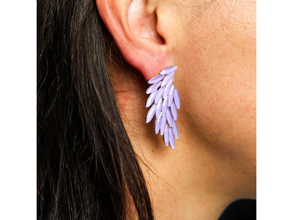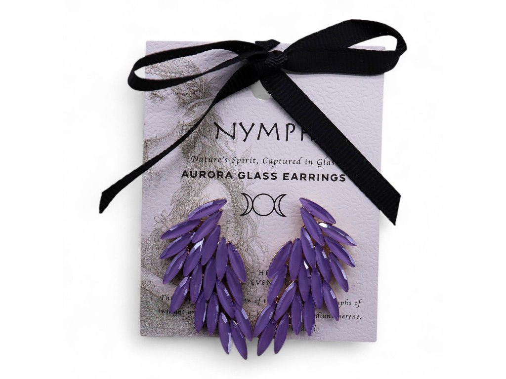 Levandulové sklo zachycuje světlo s nenápadnou hloubkou a dodává náušnicím snový, ale stále nadčasový charakter. Tento kousek je určen pro ty, kdo hledají šperk s příběhem, který nepůsobí okázale, ale jemně doprovází a podtrhuje vnitřní rovnováhu.