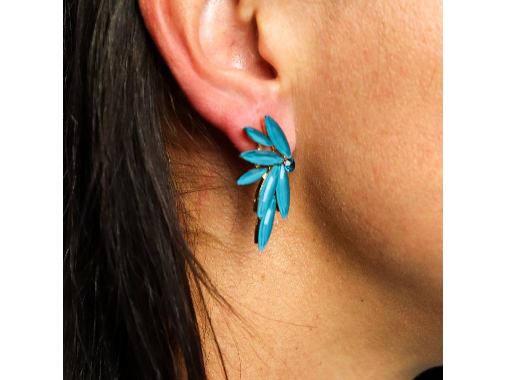 Teal green tón zachycuje světlo s jemnou hloubkou a dodává náušnicím hravý, ale vyvážený charakter. Náušnice působí klidně a přirozeně, jsou snadno kombinovatelné a vhodné pro každodenní nošení i chvíle, kdy chcete do svého stylu vnést jemný přírodní akcent.