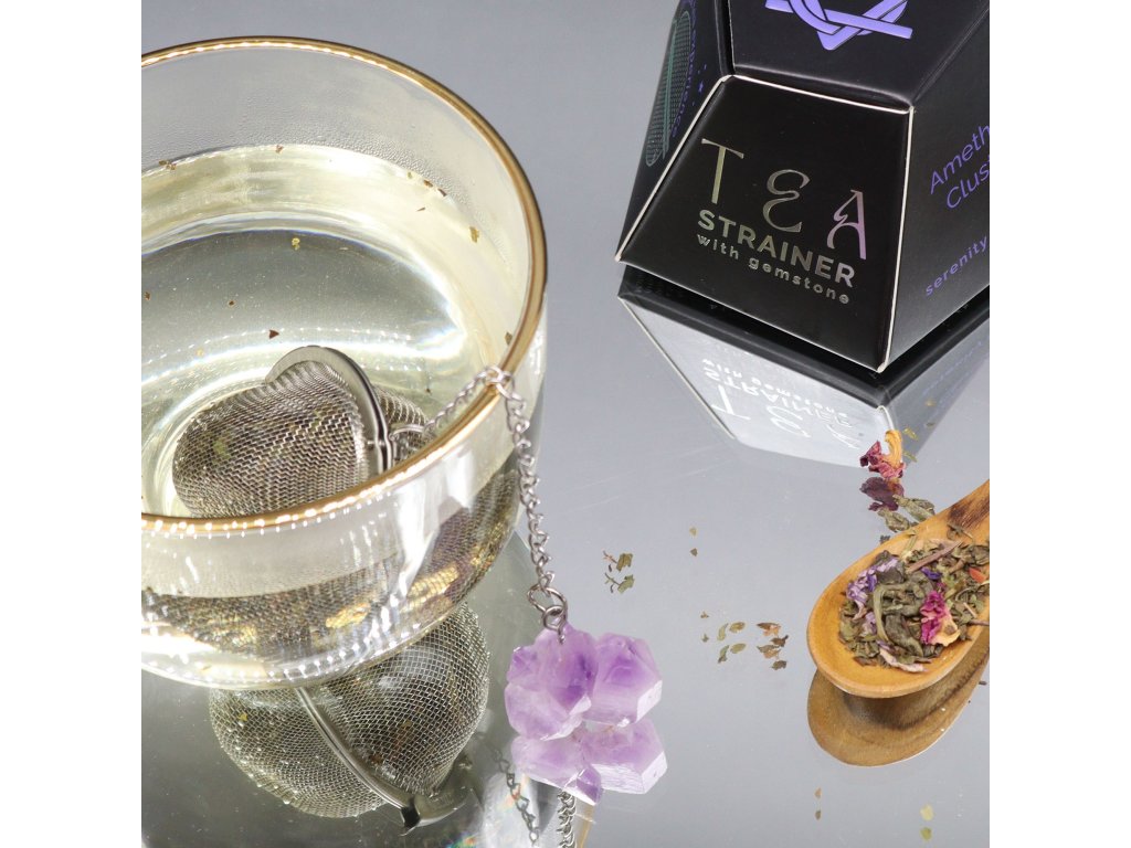 Elegantní sítko na čaj s přívěskem z přírodního krystalu spojuje funkčnost s nadčasovou estetikou drahých kamenů. Stylový doplněk pro každodenní čajový rituál i originální dárek pro milovníky čaje.