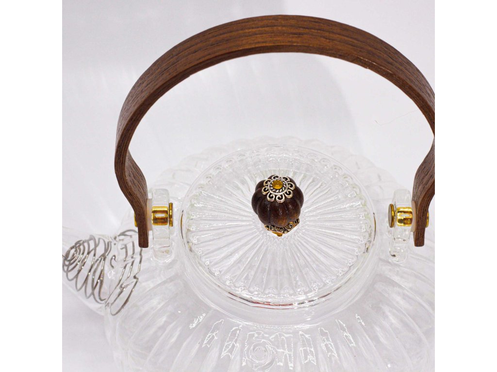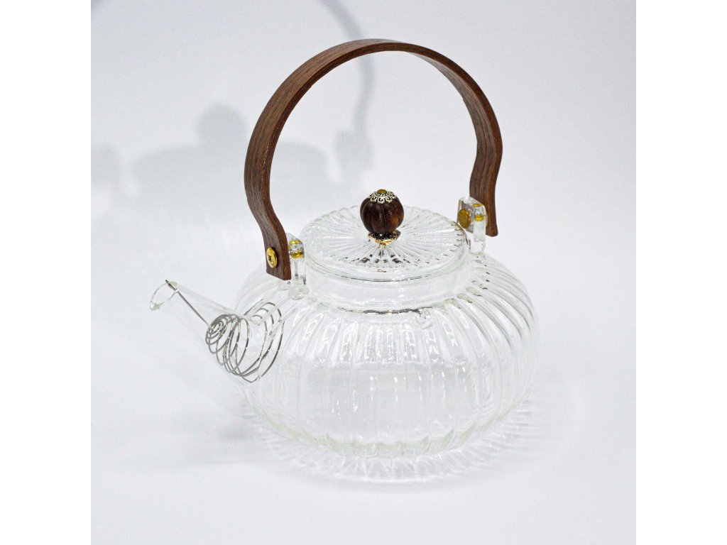 Skleněná čajová konvice s filtrem – Perleťová (850 ml) zaujme svým jemně zaobleným, „dýňovitým“ tvarem a elegantním perleťovým vzhledem. Průhledné sklo umožňuje sledovat proces louhování a vychutnat si čaj všemi smysly.