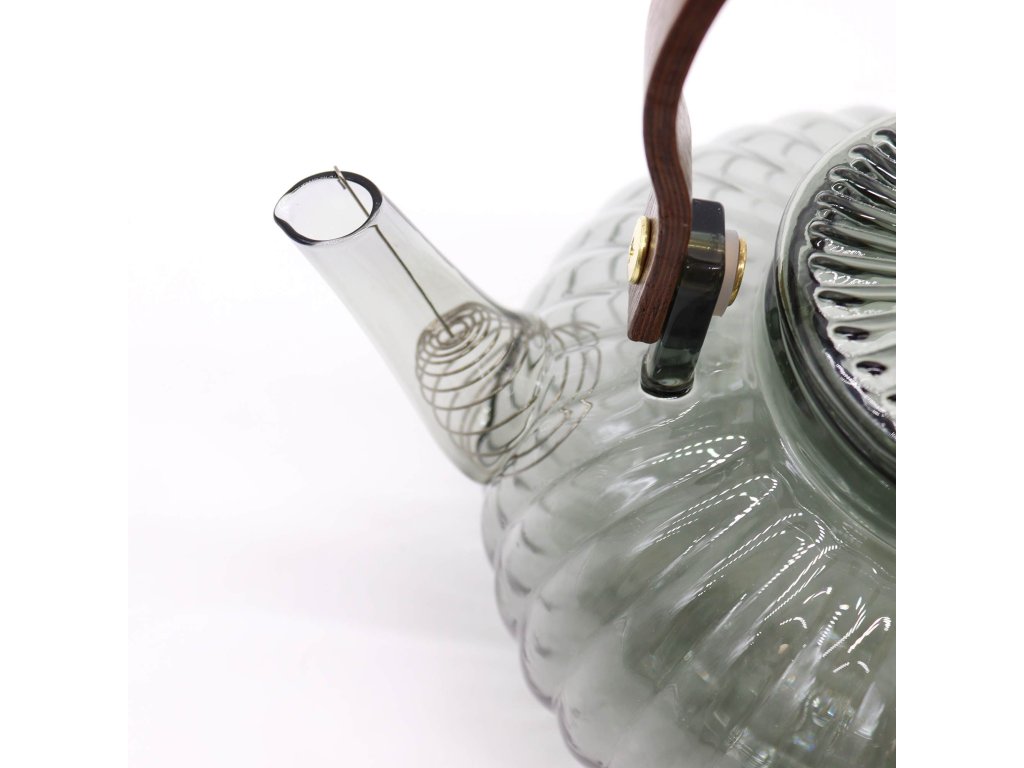 Skleněná čajová konvice s filtrem – Perleťově šedá (950 ml) zaujme svým jemně zaobleným, „dýňovitým“ tvarem a elegantním perleťovým vzhledem. Průhledné sklo umožňuje sledovat proces louhování a vychutnat si čaj všemi smysly.