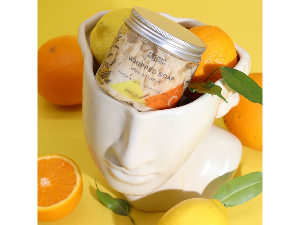 Toto šlehané mýdlo má krémovou, vzdušnou texturu, která jemně čistí a exfoliuje pokožku. Vůně pomerančových a citronových esenciálních olejů poskytuje povzbuzující, rozjasňující a osvěžující zážitek z mytí pokožky a rovnoměrnější tón pleti.
