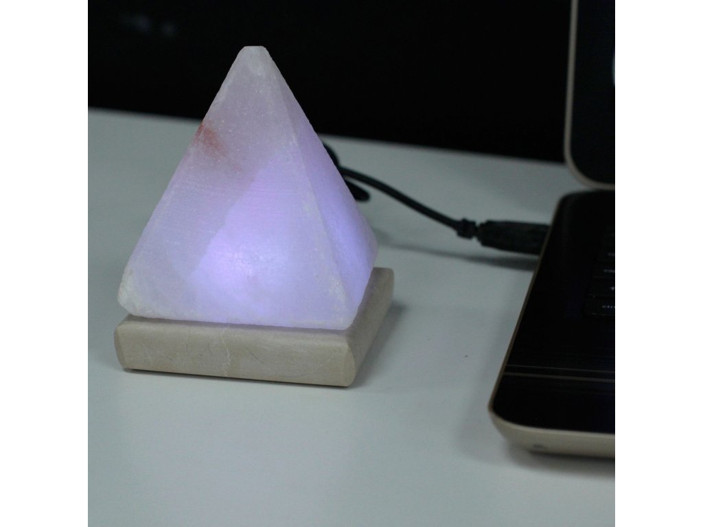 Himálajská solná lampa USB Pyramid je vyrobena z přírodního bílého solného krystalu a slouží jako dekorativní světelný prvek, který zjemňuje prostor a navozuje útulnou, harmonickou atmosféru. Díky svému kompaktnímu tvaru pyramidy se skvěle hodí na pracovní stůl, noční stolek nebo do menších interiérů.