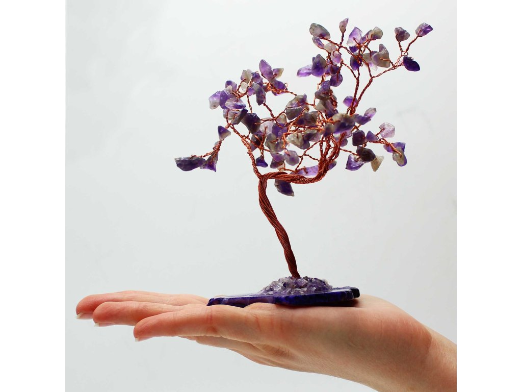 Ametyst je tradičně spojován s klidem, rovnováhou a duševní jasností. Stromek se tak stává nejen stylovým doplňkem interiéru, ale i příjemným prvkem podporujícím harmonickou atmosféru domova, pracovního prostoru nebo meditačního koutku.