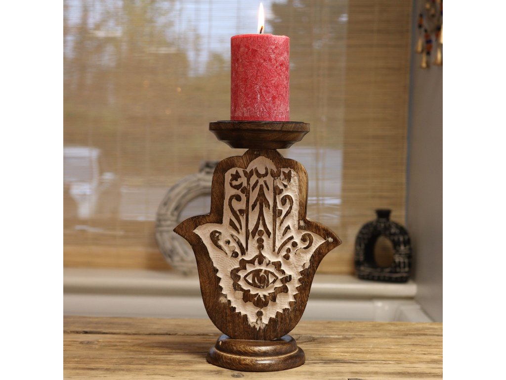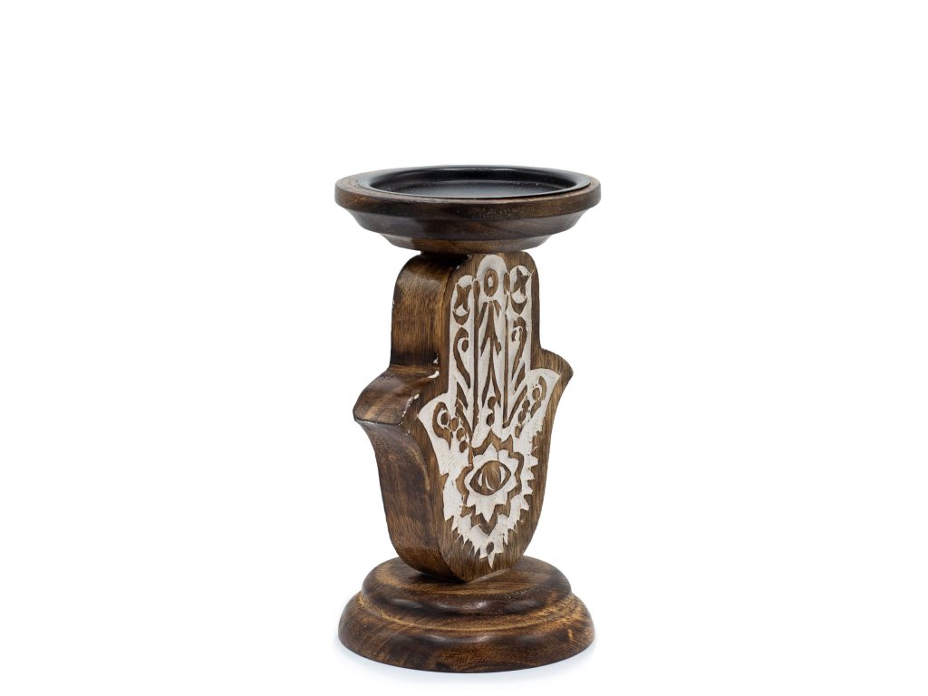 Tento svícen z mangového dřeva se symbolem Hamsa je ručně vyrobený kousek, který spojuje přírodní materiál, tradiční symboliku a nadčasový design. Mangové dřevo je ceněné pro svou přirozenou kresbu a teplý odstín, díky kterému každý svícen působí jedinečně.