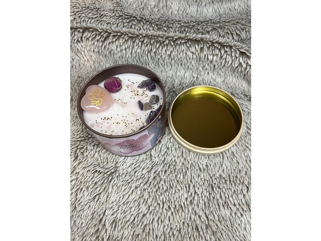 Povrch svíčky zdobí krystaly a sušené květy, které dodávají každému kusu snový, až vílí charakter. Díky ruční výrobě je každá svíčka jedinečná – stejně jako okamžik, pro který ji zapálíš.