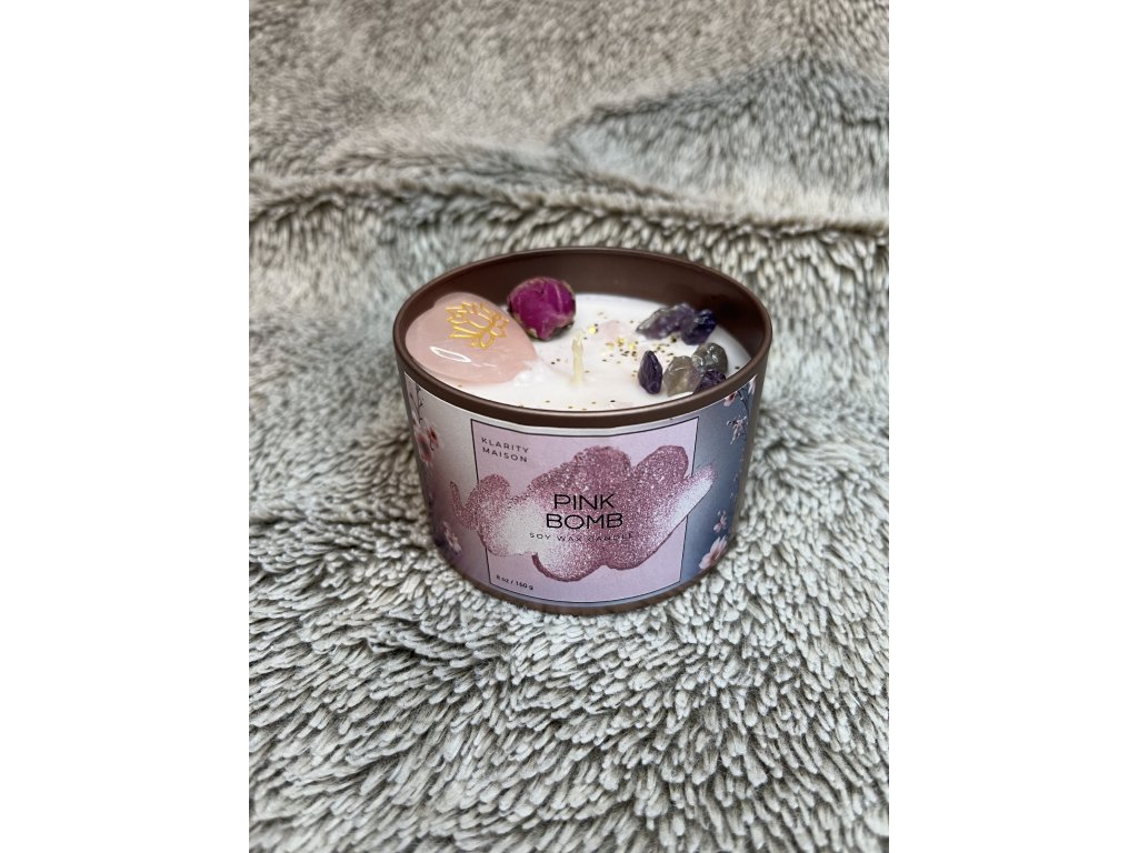 Pink Bomb je ručně vyráběná svíčka z přírodního sojového vosku, odlévaná v malých sériích jako autorská tvorba mujritual.com v Jeseníkách.