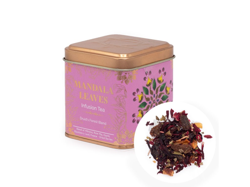 Druid’s Forest Blend je bohatá ovocná a bylinná směs, která spojuje ibišek, šípek, jablko, list ostružiníku a lyofilizované bobule. Výsledkem je hluboká, ovocná infuze s přirozeně sytou barvou a plnou chutí připomínající lesní plody.