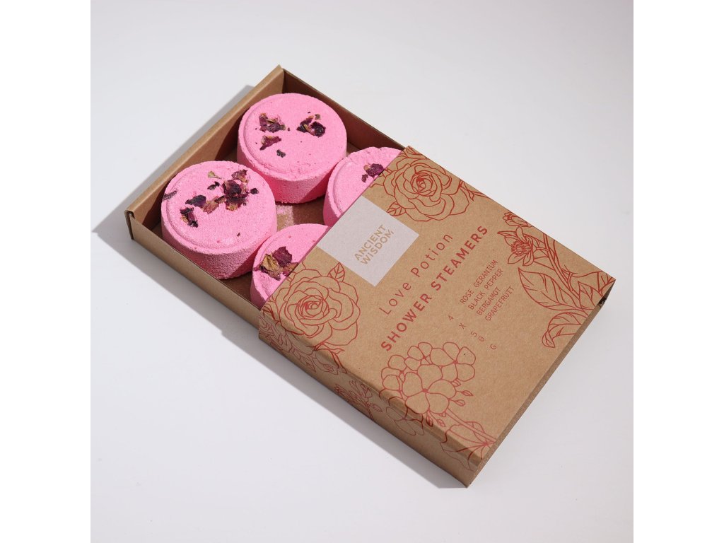 🔹 Vyrobeno v Sheffieldu ve Velké Británii 🔹 Zcela přírodní esenciální oleje: pelargónie, černý pepř, bergamot, grapefruit + okvětní lístky růže  🔹 Vhodné pro vegany a bez krutostí 🔹 Unikátní a balancující aroma🔹 Parní sprcha obsahuje 1 pár napařovačů. 50g Baleno v dárkové krabičce, tato sada je ideální jako dárek a nesmí chybět ve vašem obchodě. Jednotlivě balené ve smršťovací fólii.