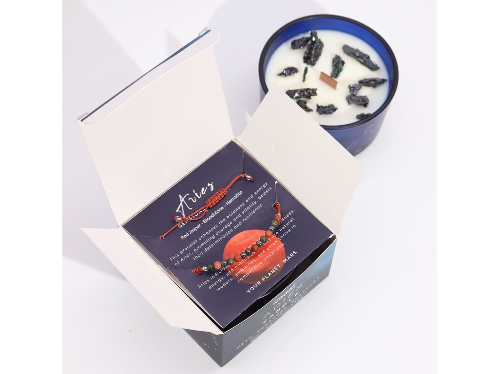 Tato sada svíček a náramků je ideální pro oslavu nezastavitelné povahy Berana, je smysluplným dárkem nebo osobním rituálem pro posílení síly.