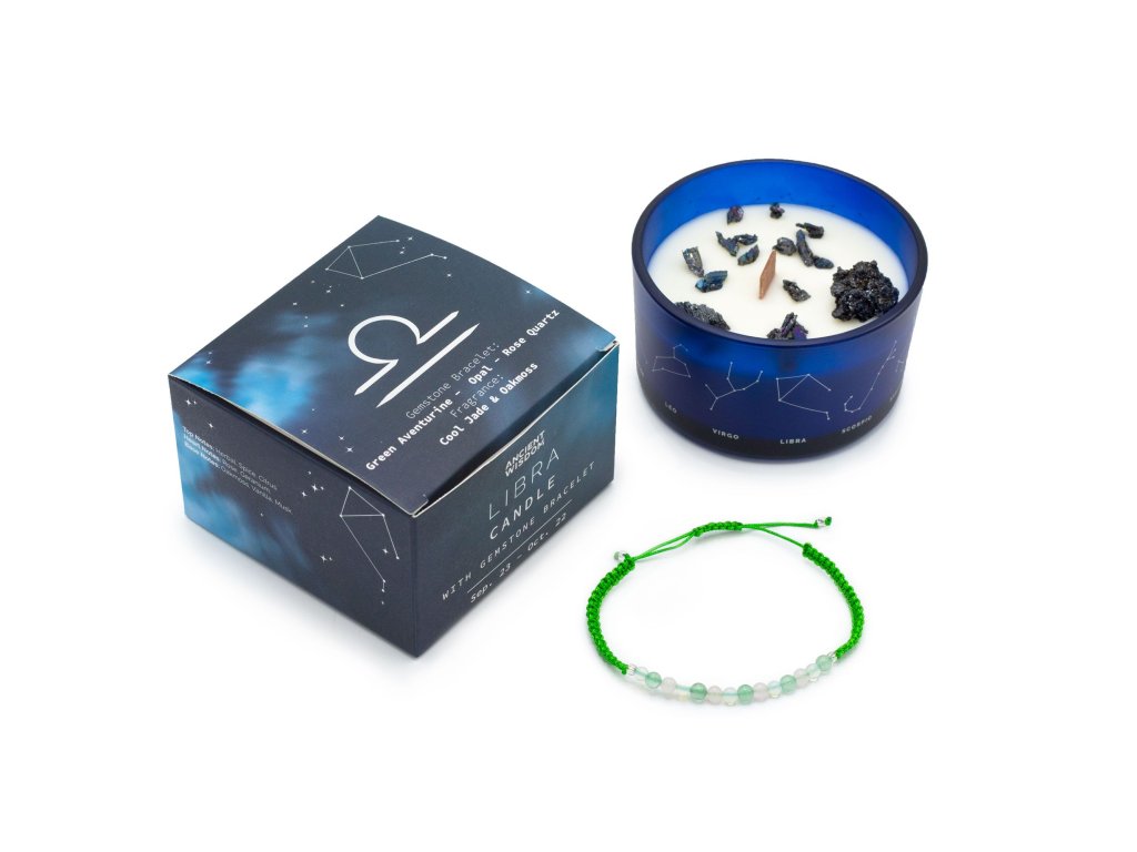 Váhy, najděte svou rovnováhu v kosmickém tanci. Titanium Stone, dokonale vyvážená stupnice, ztělesňuje vaši snahu o rovnováhu. Tančete, Váhy a nechte své sny vzlétnout na křídlech dokonalé rovnováhy. Sada obsahuje náramek z drahých kamenů vyrobený ze zeleného avanturínu, opálu a růžového křemene vybraného tak, aby rezonoval s diplomatickým duchem Vah, umocnil jejich kouzlo a podpořil rovnováhu v jejich vztazích.